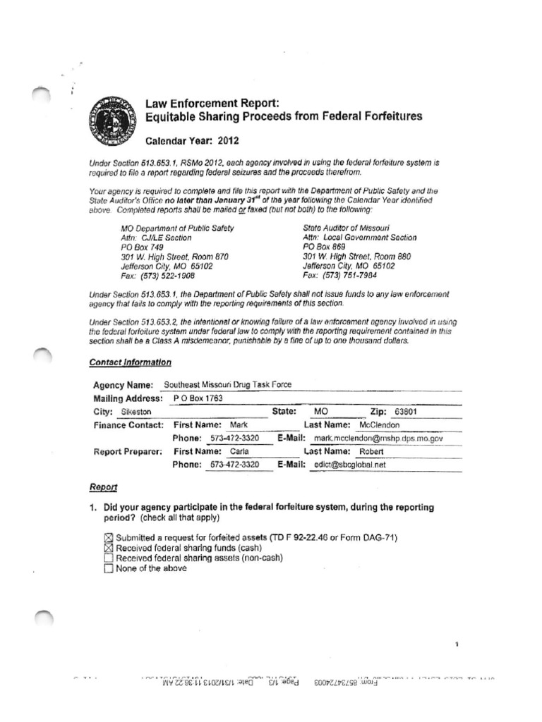 Southeast Missouri Semo Drug Task Force 2012 Asset Forfeiture Government
